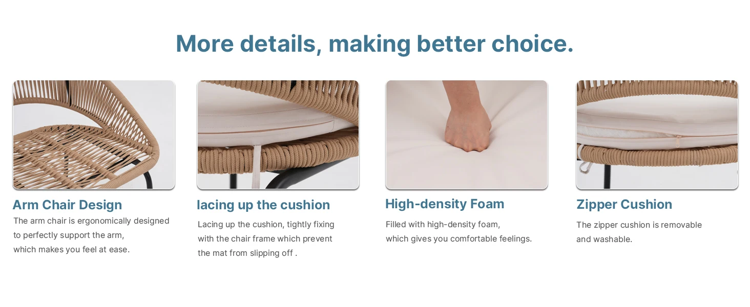Greater Flexibility and Comfort: Woven rope tends to be more flexible than wicker, providing a softer and more comfortable seating experience. The rope can conform to your body shape, making it more ergonomic and comfortable for long periods of sitting.